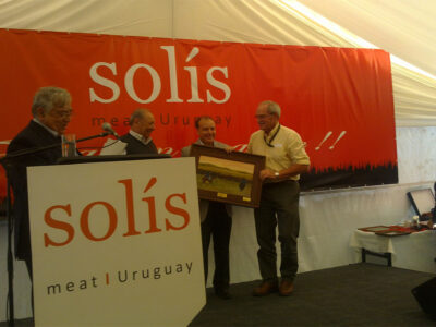 El ing. Agr. Aníbal García Ricci, presidente de Vaquería del Este, hace entrega a los titulares de Solís Meat Jorge...